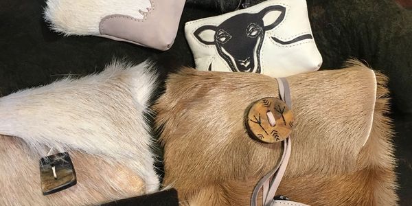 Hides procured from locally and sustainable raised sources are turned into clutches and bags